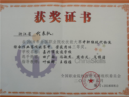嘉興市交通學(xué)校物流專(zhuān)業(yè)學(xué)生在全國(guó)技能大賽中喜獲三等獎(jiǎng)