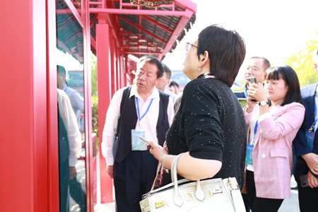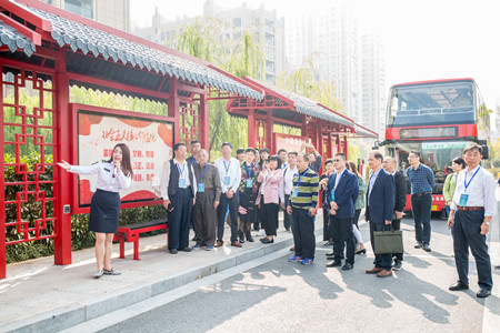25日上午,游3路文化示范線的雙層巴士載著來自各地的參會代表,前往紅船學院公交首末站參觀。被中共嘉興市委宣傳部聘為嘉興市“紅船宣講團”之“好聲音宣講團”成員的李晨,作為公交黨員志愿者,為代表們做全程講解。一進入公交首末站,濃郁的紅色文化氣息吸人眼球,代表們不自覺地停下腳步駐足觀看,只見公交站務房、候車亭、始發(fā)線路和場站其他布設(shè)均使用了紅色文化元素,并設(shè)有黨員、群眾學習教育基地和暖心驛站,使大家充分感受到了紅船起航地嘉興的獨有文化特色和魅力。微型首末站不僅設(shè)有站務室和休息室,而且功能設(shè)備齊全,配置了休息座椅、飲水設(shè)施、便民箱、公交IC卡補登機、充電設(shè)備、雨具、微波爐等便民設(shè)施,放置了黨建書籍、報刊等提供黨員群眾借閱,在向市民乘客、戶外勞動者和駕駛員提供周到的便民服務的同時,打造了別具一格的黨員群眾學習交流的紅色文化陣地。這些舉措得到了代表們的充分認可。