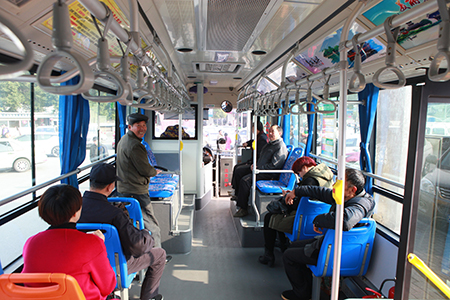 駕駛員胡師傅開心地說:“這個車與以前車輛最大的不同是起步平穩(wěn),基本無噪聲,還有許多人性化設(shè)計,車內(nèi)設(shè)有8個下車提示按鈕,只要乘客到站前按下紅色按鈕,我這里就有下車請求提示了,再也不怕人多聽不清了”。