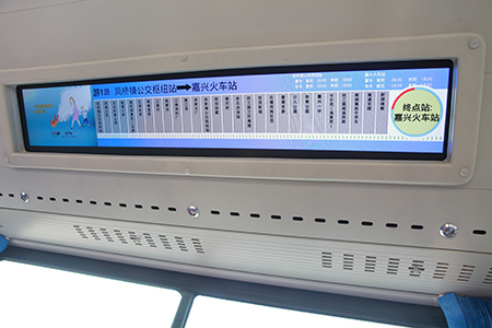 “‘游1’路作為旅游公交專線,車輛的舒適度有了很大提升。”國鴻公交相關(guān)負(fù)責(zé)人表示,“投入的13輛油電混合動力的新能源車都是今年新購置的車輛,車內(nèi)設(shè)施設(shè)備齊全,具有‘低能耗、低排放、高經(jīng)濟性’的特點。同時‘游1’路所有車輛內(nèi)都安裝了LCD的顯示器,可實時顯示到站信息,當(dāng)前到哪一站一目了然,還可對旅游資源進(jìn)行相應(yīng)的介紹。”車廂一側(cè)除電子線路走向圖外,還有乘客須知、安全提示等內(nèi)容,另一側(cè)設(shè)有‘美麗嘉興’的景點宣傳畫。