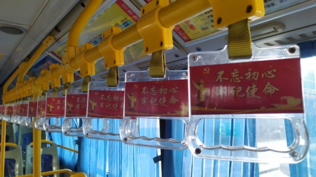 據(jù)了解,92路公交線上,運(yùn)營的車輛有9輛,其他8輛車上將展示黨的好兒女、黨的十九大精神等內(nèi)容。車上的拉手環(huán)公益廣告也緊扣“不忘初心、牢記使命”主題,始發(fā)站報站語音也同步進(jìn)行了優(yōu)化,在始發(fā)時報站“紅船起航地,嘉興歡迎您”。同時,對紅船學(xué)院公交首末站進(jìn)行了升級打造,設(shè)立了“不忘初心、牢記使命”主題教育宣傳欄等紅色文化內(nèi)容。集團(tuán)公司相關(guān)負(fù)責(zé)人表示:“在國慶前夕推出92路主題教育專線,是嘉通集團(tuán)深入貫徹落實(shí)市國資系統(tǒng)‘致敬百年初心地,國企黨建聚合力’三年行動計劃、打造創(chuàng)樹黨建服務(wù)品牌、展示國資國企新時代擔(dān)當(dāng)?shù)膭?chuàng)新舉措之一。”