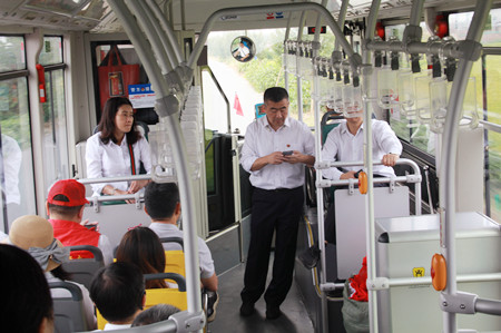 回程途中,參加活動的黨員們?nèi)郧榫w飽滿不忘學(xué)習(xí),在車上由支部書記帶領(lǐng)大家傳達(dá)學(xué)習(xí)《中共嘉興市委關(guān)于開展向朱麗華同志學(xué)習(xí)的決定》。