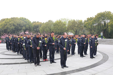 上午九點,全體人員一同來到了嘉興革命烈士陵園,在莊嚴的國歌聲中大家集體默哀,共同瞻仰了革命烈士紀念碑,并鄭重地敬獻了花圈,將鮮花擺放在紀念碑前,向烈士紀念碑深深鞠躬,共同追憶革命先輩們浴血奮戰、不怕犧牲的光榮歷史和高尚情懷,深切緬懷革命先烈們的豐功偉績。