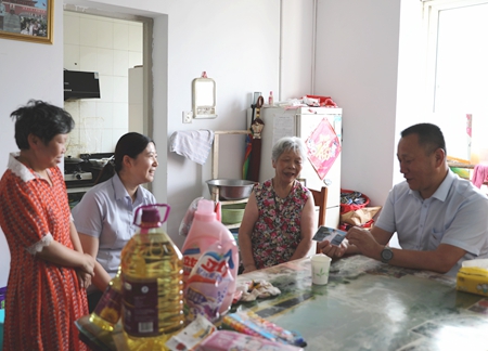 七一前夕,在中國共產黨建黨98周年到來之際,6月27日下午,軌道公司黨支部黨員志愿者走訪慰問長水街道由拳社區府南花園低保戶費美玲家庭,為她們送上黨的關懷和溫暖,并送去了生活用品和慰問金等。