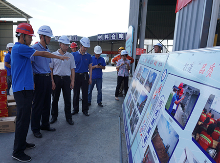 7月20日下午,市交通運輸局局長顧國強一行赴灣北二期工程TJ01標慰問在高溫下施工一線的建設者們,向他們送上夏季防暑慰問品。集團公司總經理李云鴻、市交通聯合工會副主席陳虹等相關負責人陪同慰問。