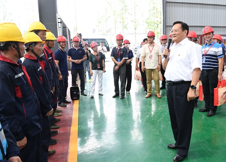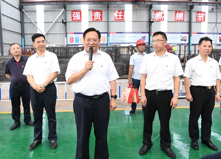 7月30日下午,市委書記張兵深入市區快速路環線工程(一期)土建1標段施工工地,看望慰問堅守在高溫一線的建設工人。市人大常委會副主任朱海平,市委副秘書長、市委辦公室主任趙建明,市總工會黨組書記、常務副主席嚴吉丹,項目推進辦主任畢志強、副主任許海云,集團公司董事長李云鴻、總經理張富標、副總經理李建國等陪同慰問。
