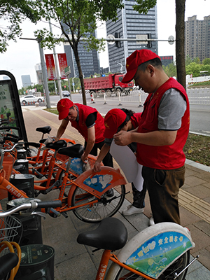 此次活動旨在為進一步深化黨員志愿服務,弘揚雷鋒精神,充分發(fā)揮黨員先鋒模范作用,鞏固文明創(chuàng)建成果,公司黨員以小組為單位紛紛來到各公共自行車網(wǎng)點,為自行車“洗洗臉”,黨員們先將自行車上的“牛皮癬”仔細清除干凈,然后將全新的“綠色出行、低碳環(huán)保”的宣傳畫黏貼上去,使公共自行車煥然一新。