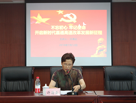 許海云以“不忘初心牢記使命 開啟新時代嘉通高速改革發展新征程”為題,從認真貫徹落實加強國有企業黨建工作的相關精神、認真落實好嘉興市委關于全面加強新形勢下國有企業黨建工作實施意見、深刻領會從中央到地方以及嘉興市的加快國有企業改革的相關要求、狠抓改革工作,加快高速管理公司新時代改革發展、加強干部隊伍建設和黨風廉政建設警鐘長鳴等六個方面進行了詳細闡述,強調黨員干部要不忘初心、牢記使命,找準自己的角色定位,明確責任、忠實履責、嚴格問責,同心同德,砥礪前行,攜手共建和諧美麗嘉通高速。