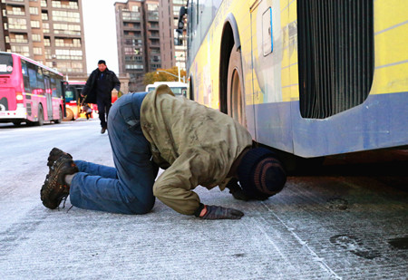 1月22日,我市出現(xiàn)大面積降雪,寒潮來襲,市區(qū)路面結(jié)冰嚴(yán)重,給城市公交營(yíng)運(yùn)工作帶來嚴(yán)峻考驗(yàn)。公交公司積極部署防寒抗雪保暢工作,采取有力措施保障市民雪天出行。