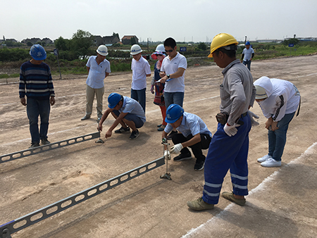 6月19日,TJ06標項目部對該路基段進行水穩底基層攤鋪工作,隨著滿載水穩混合料的自卸車緩緩倒入攤鋪機前端受料斗,兩側長螺旋快速轉動、均勻地送料至整個橫斷面上,灣北二期路面拉開水穩試驗段底基層攤鋪工作序幕。該試驗的數據將作為下一步灣北二期全面開展路面水穩施工的依據。