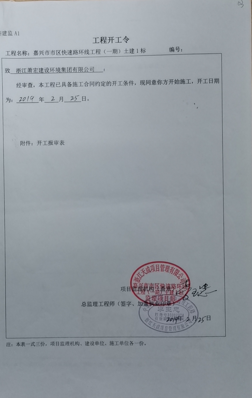 嘉興市市區快速路環線工程(一期)土建1標開工時間